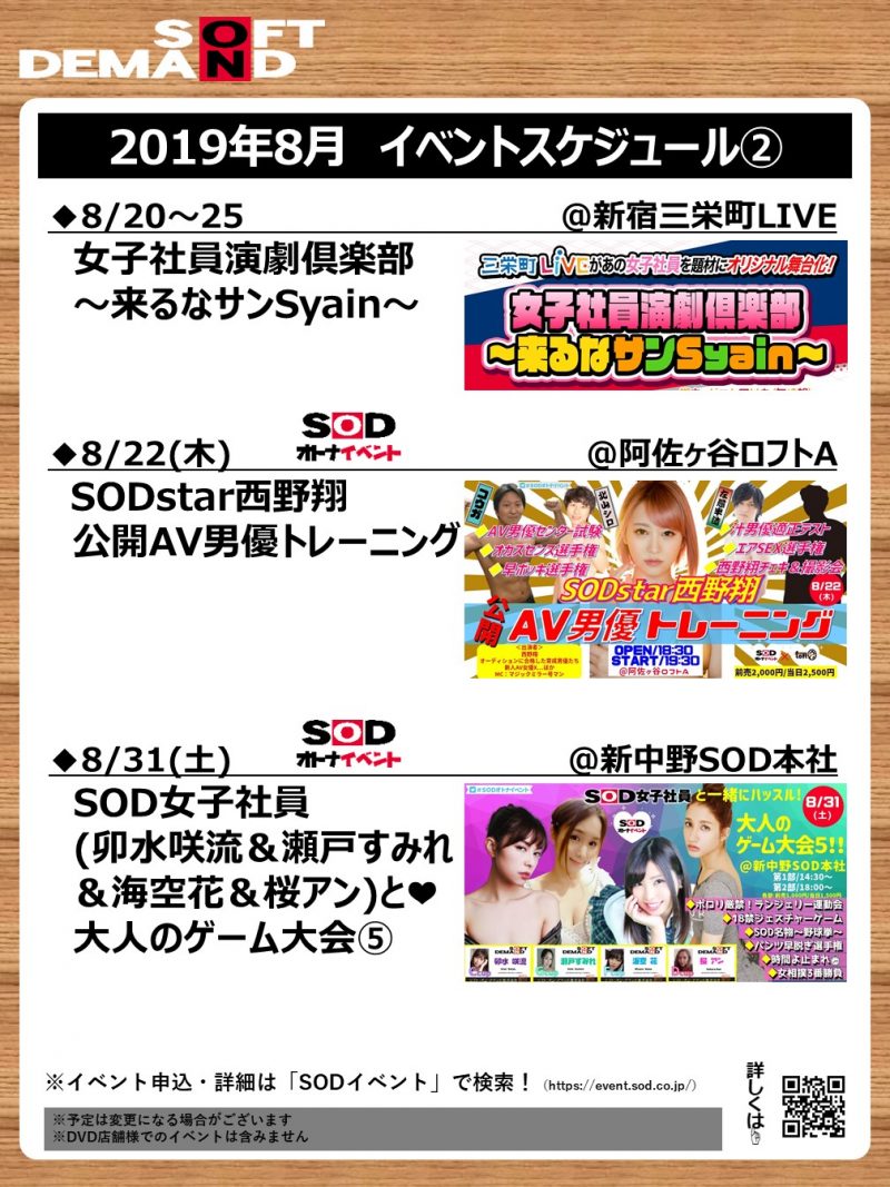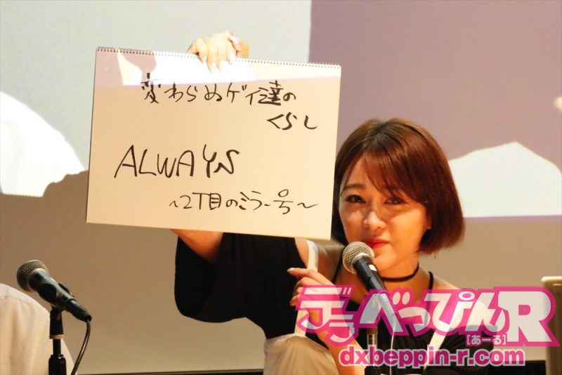 参加者は西野翔ちゃん、SOD女子社員の吉岡明日海ちゃん(宣伝部)、浅井心晴ちゃん(2019年度新卒・研修中)、AV監督のバクシーシ山下監督、木村真也監督、太田みぎわ監督、道玄坂69の成海ゆづちゃん(ピアニッシモ)、LIZちゃん(GINGIRA☆TOKYO)。
