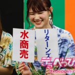 ここで絶妙な回答をしたのは波多野結衣ちゃん。友田彩也香ちゃんのキャッチコピーを「アホすぎる熟女」と答え会場は大爆笑。あまりの上手さに友田彩也香ちゃんが近づき、思わずハイタッチ(笑)。美しい友情です。