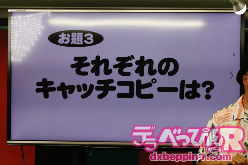 3問目の「それぞれのキャッチコピーは?」の問いは、左隣の出演者のキャッチコピーを創作。写真をご覧下さい(小写真はクリックで大きくなります)。