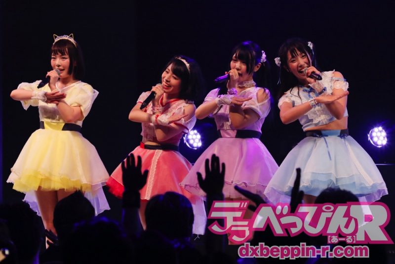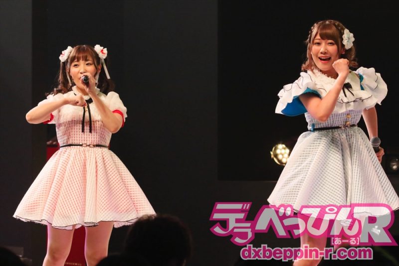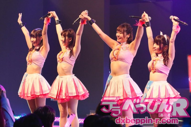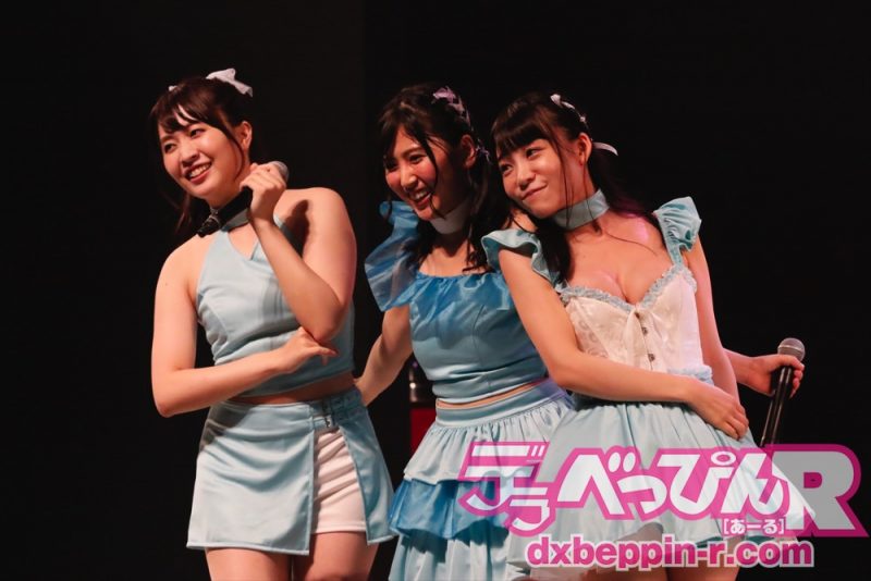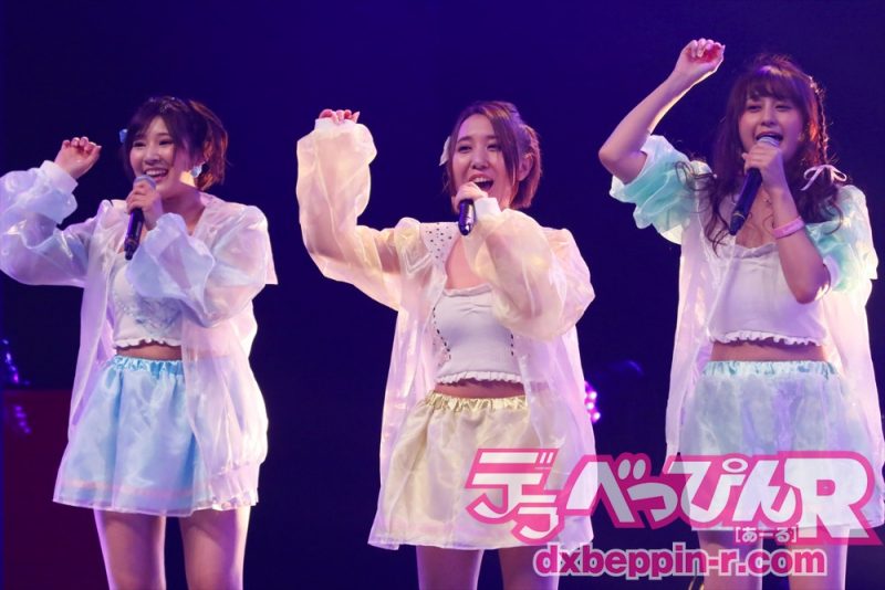 3年連続の出場となるラブリーポップス(愛原れの、星空もあ、市橋えりな)は新衣裳で登場! 『Dancing tonight』、『等身大lalaラブソング』、『ねこにゃんにゃん』と定番曲を披露。完成度の高いパフォーマンスをみせてくれました。
