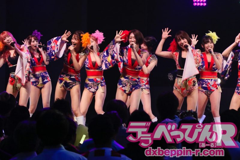 まずはオープニングアクトとして恵比寿マスカッツが登場。今回は市川まさみちゃん、川上奈々美ちゃん、羽咲みはるちゃん、架乃ゆらちゃん、桜もこちゃん、友田彩也香ちゃん、みひろちゃん、辰巳シーナちゃん、神崎紗衣ちゃん、吉崎由貴ちゃんの選抜メンバーです。