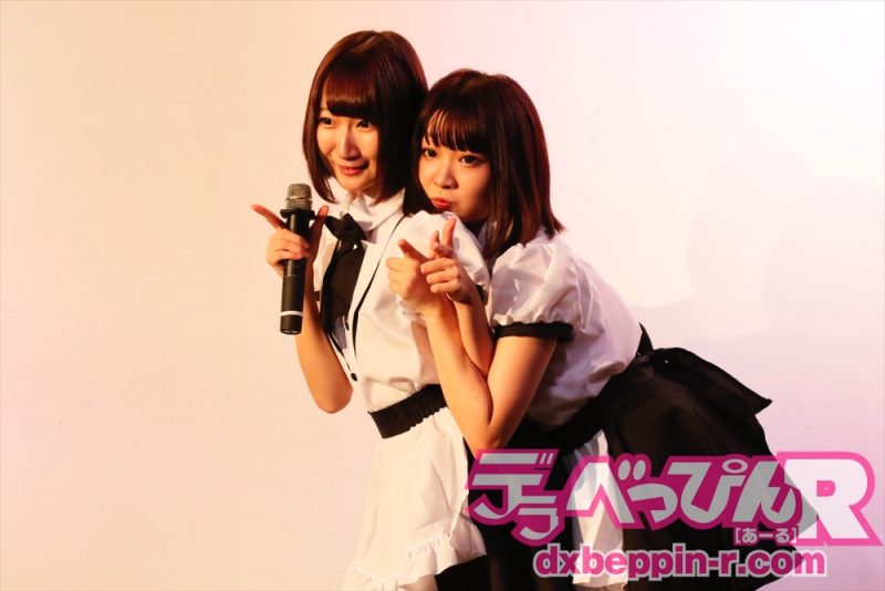 1部はスクール水着での撮影タイムを挟み終了。2部は2人で選んだというウェイトレスのコスプレ姿で登場します。