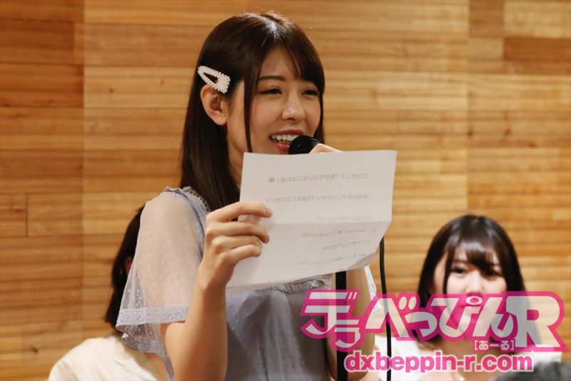 エッチなセリフが得意なあおいれなちゃんは「今日、私、上に乗っちゃおうかなあ。私が大きくしてあげる。いっぱい精子ちょうだい」と読み上げると、これまたピロピロ音がマックスに。「精子ちょうだい」はアドリブでしょうか?