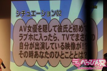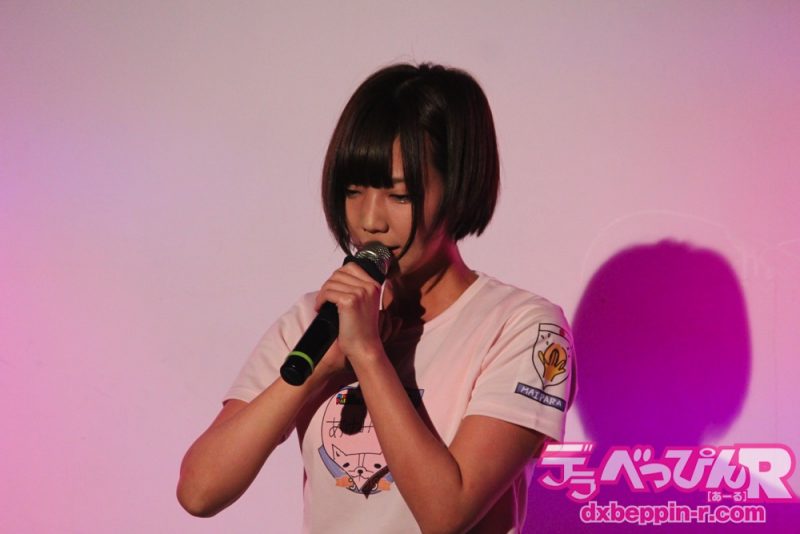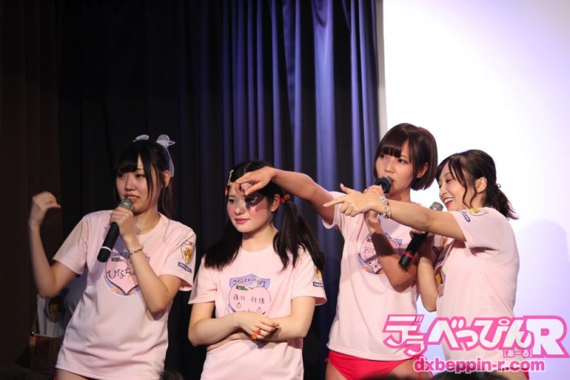 藤井林檎ちゃんは「このAVパクりんごしながら、一緒にパコりんごしよ!」とまさかの開き直り&気の利いたかわし方を!これには会場中拍手喝采。対する白井ゆずかちゃんも「一緒に(AV)出ればいいよね。今からセックスしよ!」となかなかの返しを見せました。