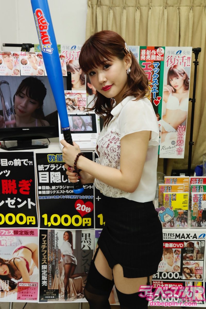 老舗AVメーカーの「MAX-A」は専属女優の涼宮琴音ちゃんが参加。こちらもケツバットなど体感メニューを用意。行列ができる盛況ぶりでした。