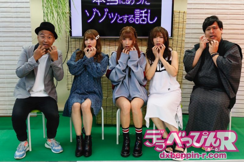ぁみさんは地元での心霊体験を語ると、友田彩也香ちゃんは首をすぼめて全身を膠着、AIKAちゃんは身を縮め、大槻ひびきちゃんは何故か自分のおっぱいを揉み始めます。