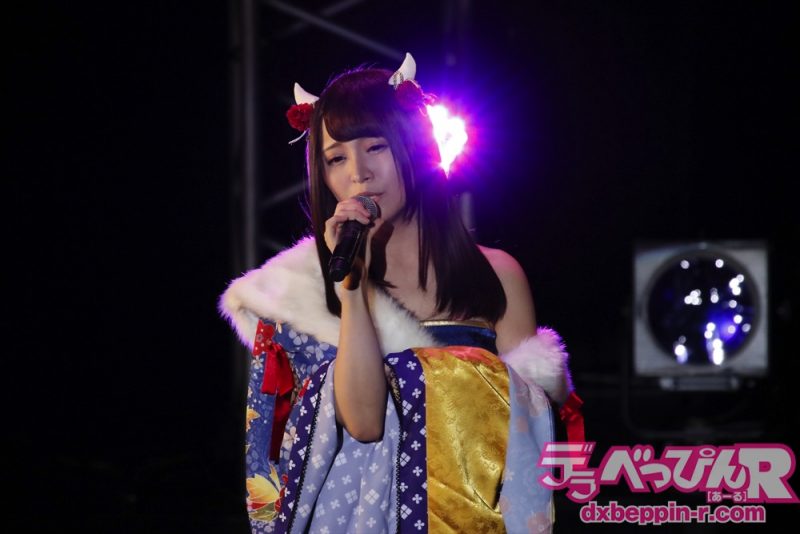 枢木あおいちゃんは和服をモチーフにした衣装で登場。緊張しすぎてイヤホンをつけたままステージに登場しました。