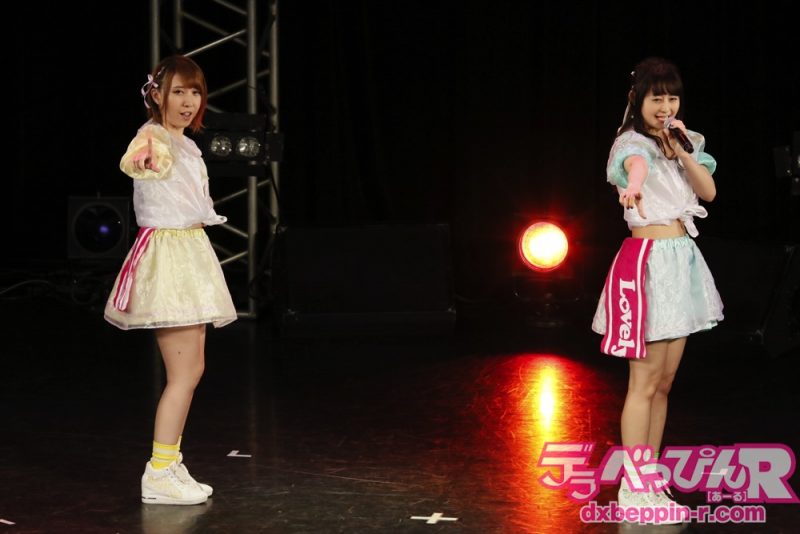 ラブリーポップス(愛原れのちゃん、星空もあちゃん)は2人体制になり初のライブ。オリジナルの『脳内バカンス』を歌い、2人でも元気なところを見せてくれました。