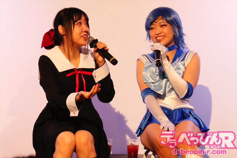 「コスプレAVのココがイイ」のテーマでは「それを話したら2、3日かかる」と園田監督がコメント。2、3日付き合ってもファンは大丈夫でしょう! ひなちゆんちゃんは「衣装がちゃんとしたキャラクター。自分が好きなキャラがエロいことをしているのはイイですねえ」と良さを語ります。これこそコスプレAVの本質でしょう。