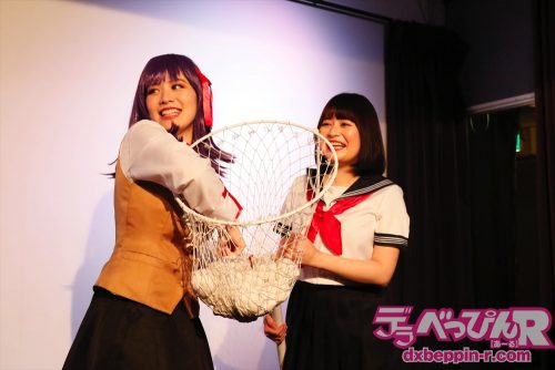 後半は「チーム対抗玉入れ合戦」から開始。星あめりちゃん&ひなちゆんちゃんチームと優梨まいなちゃん&志田雪奈ちゃんが対決。ファンも参加しての玉入れでは優梨まいなちゃん&志田雪奈ちゃんが圧倒的勝利を収めました。