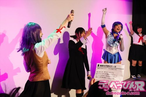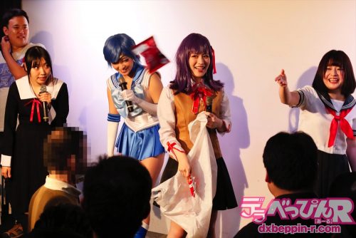 出演したセクシー女優は星あめりちゃん、ひなちゆんちゃん、優梨まいなちゃん、志田雪奈ちゃんの4人。イベントコンセプトが文化祭ということで制服コスプレ姿で登場。