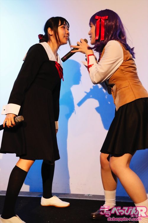 トークに続いて行われたのが「パコパコ団とゆかいな仲間たちプレゼンツ 優梨まいなVS志田雪奈 ドキドキ5番勝負!」。タイトル通り優梨まいなちゃんと志田雪奈ちゃんが様々なゲームで対戦。この勝負はファンから2人の応援団長が募集され、勝った方の応援団長にはその場で生脱ぎパンティがプレゼントされます。