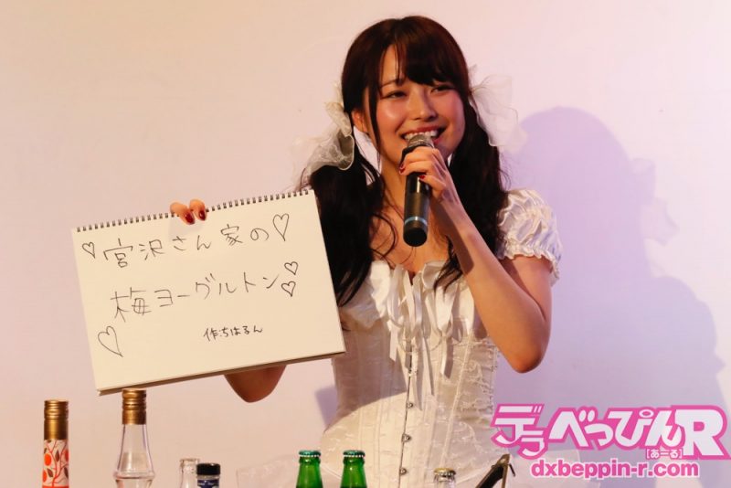 ここまでの進行を終え、感想を聞かれた宮沢ちはるちゃんは「お酒も飲めて楽しかった。緊張が吹っ飛んじゃいました」と楽しそうにコメント。後半のライブへ弾みをつけた。