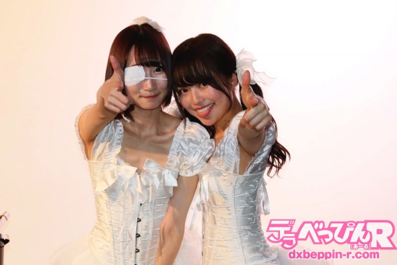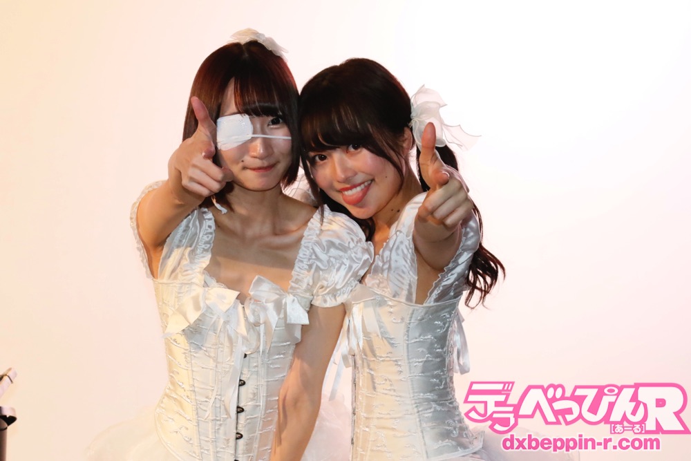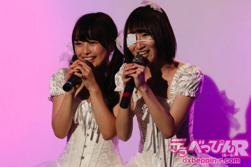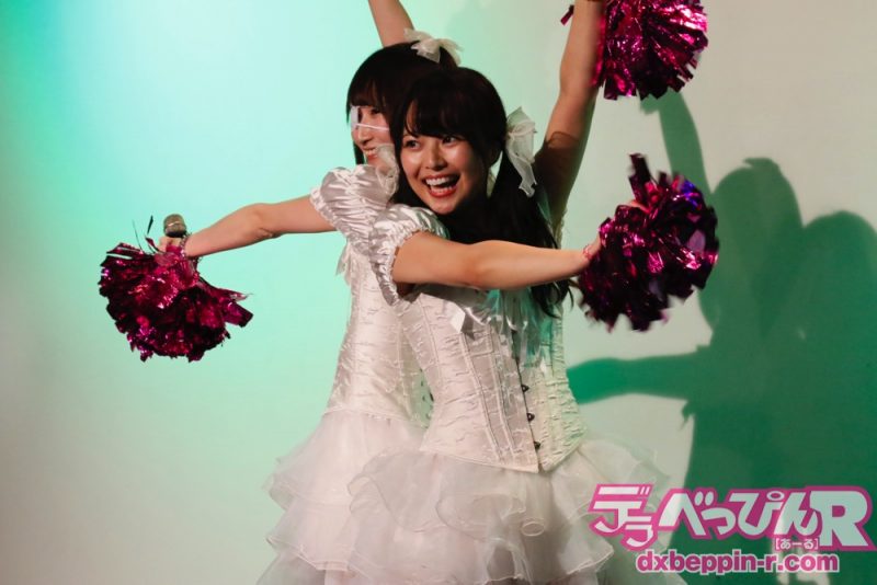 2曲目にしてファンの盛り上がりも最高潮となり、「自分の声も聞こえないくらい盛り上がってすごい。感無量」と宮沢ちはるちゃん。宮沢ちはるちゃんの存在を「安心する」と評価する夢乃美咲ちゃん。
