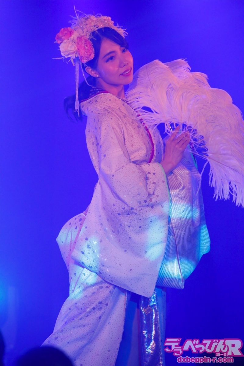南まゆちゃんは艶めかしい和服姿で演舞。浅草ロック座などで活躍しているだけに見事にパフォーマンス。