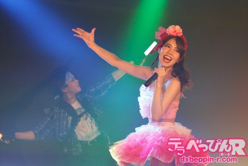 いまやライブには欠かせない存在となったあおいれなちゃん。オリジナル曲の『パンチラの女神さま』、『がまんJUICEもっとちょうだい』、『ちっぱい最強伝説』とカバー曲を披露。