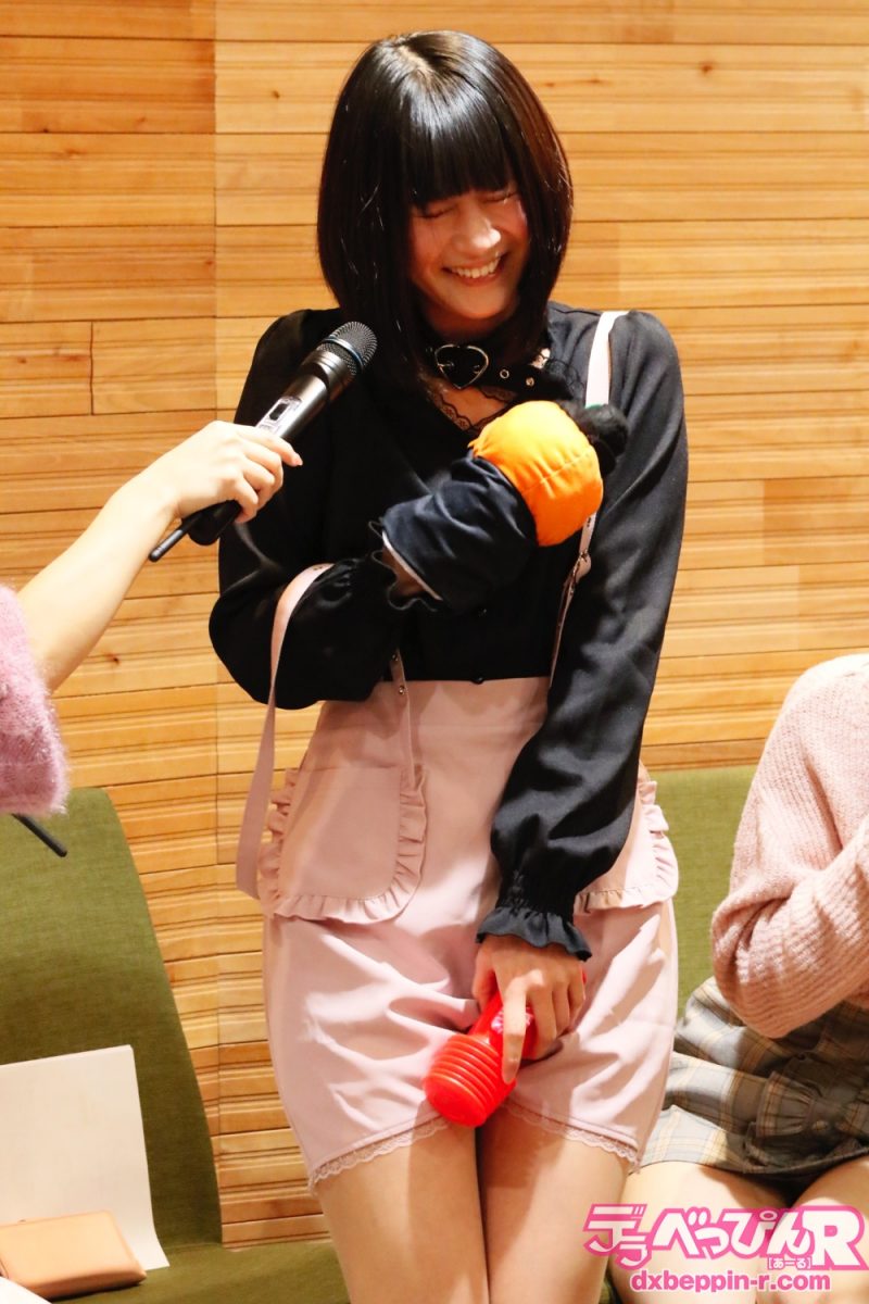 その桃香りりちゃん、初登場のため新人の登竜門である「ピロピロタイム」に挑戦してもらいます。「ピロピロタイム」は恥ずかしいことをしてもらい、それに反応したファンがピロピロ笛を吹いて興奮状態をアピールするコーナー。今回は小道具を使ってファンを誘惑します。