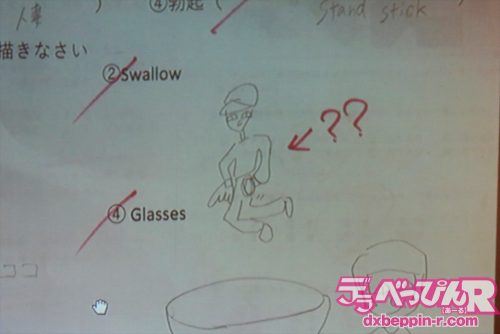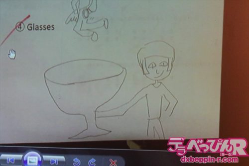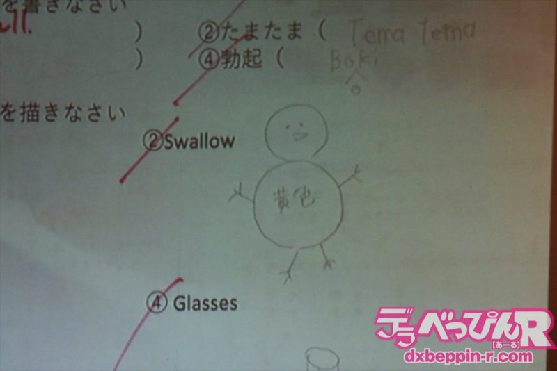 英単語をイラストで描く問題では奇妙な人間のイラストを描く川上奈々美ちゃん。ちょっと怖い絵です(笑)。
