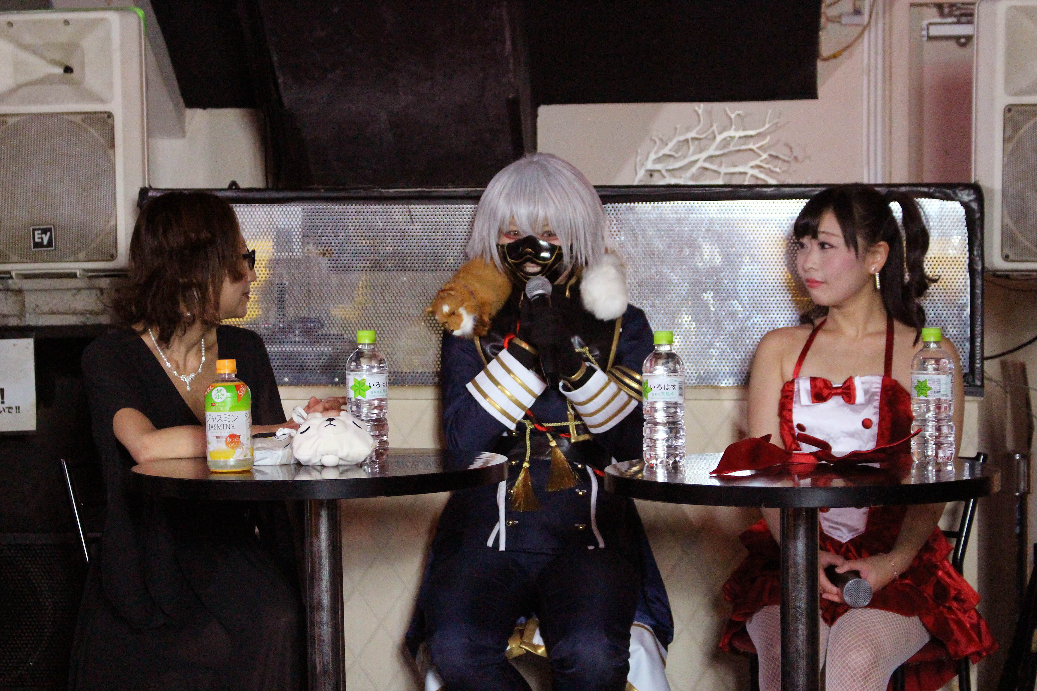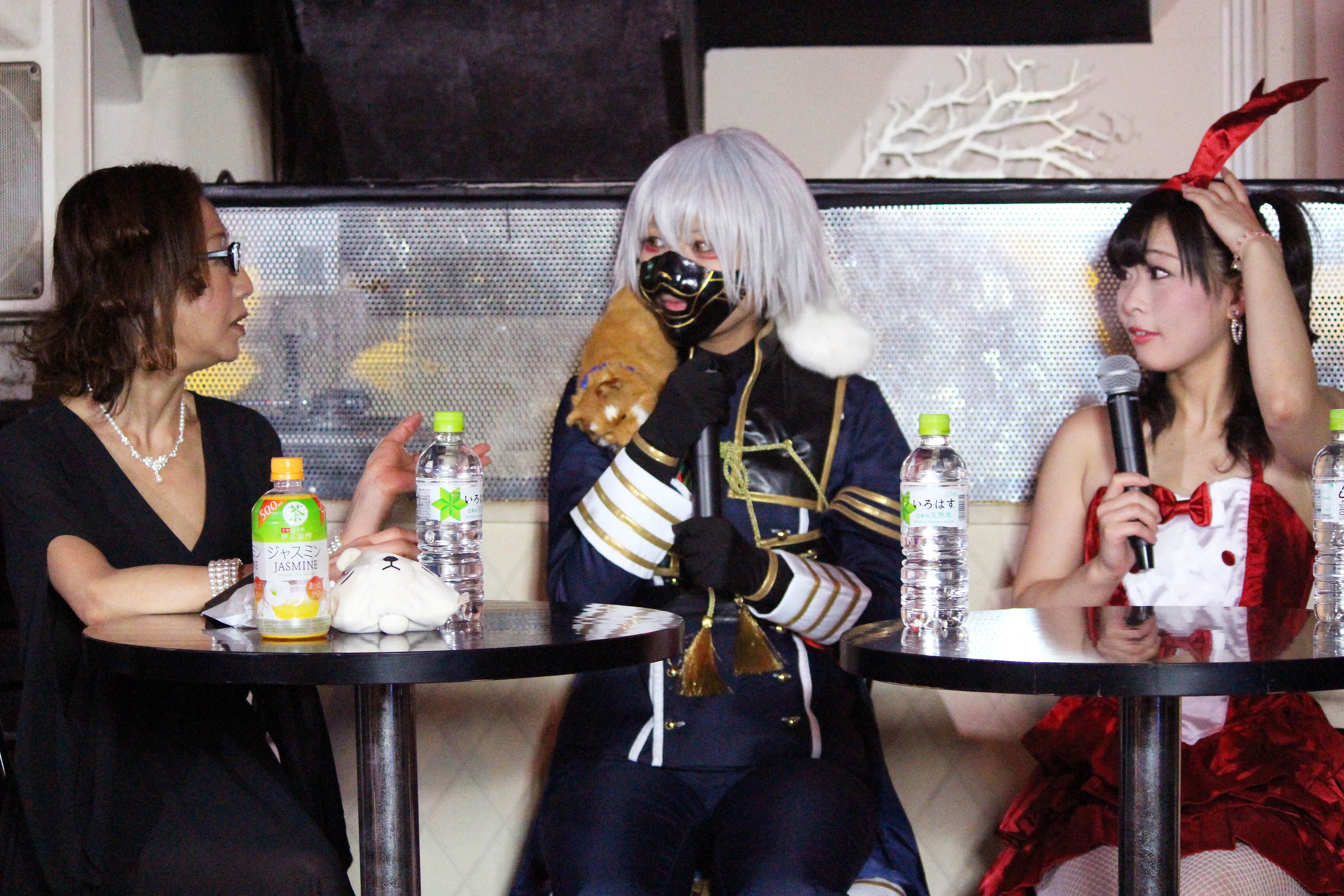 蛍ちゃんは現在毎月行っているイベントがセルフプロデュースの場だと語りました。今後はCDROMを作ってみたり、小さいバーを貸し切っての飲み会イベントもやりたいと意欲満点。「自分で何かする」ことに掛けては労力を惜しまず、チェキの落書き用のペンも世界堂に自分で買いに行ったことや今日のコスプレも完全自腹であることを告白。マリーさんも「セルフプロデュースが嫌いな子は、まずこういう場にも出てこないよね」とその意気込みに太鼓判を押していました。