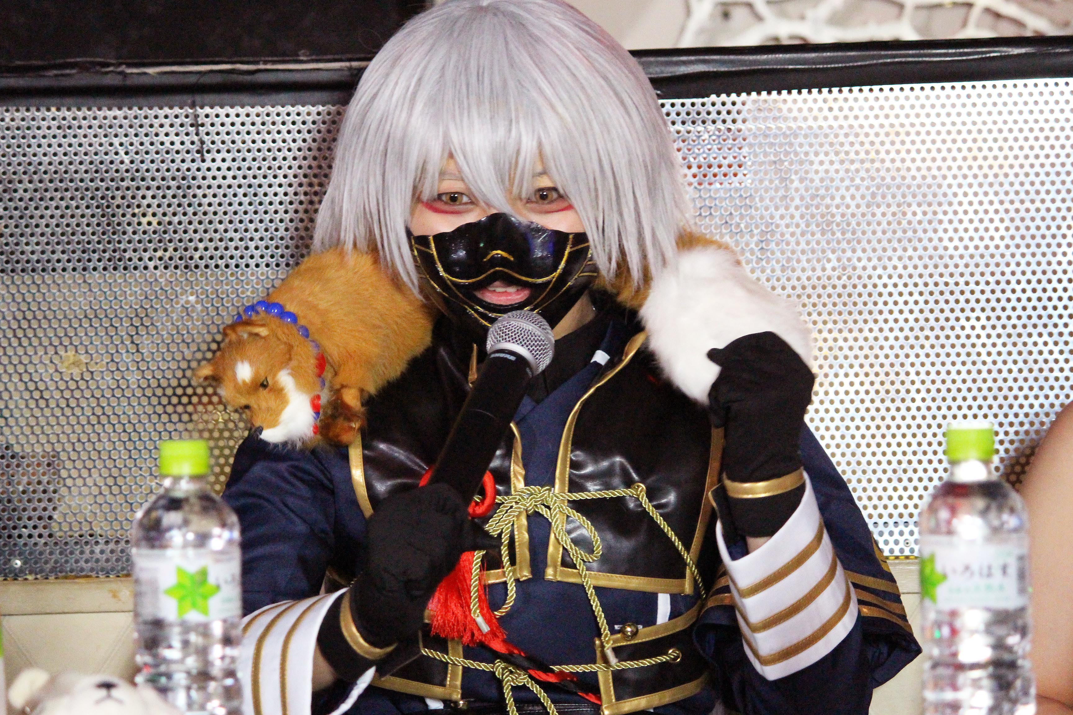 第三部は「女優が生き残るために必要なこと。セルフプロデュースについて考える」。MCは三代目葵マリーさん。出演者は刀剣乱舞の銀狐に扮した乃木蛍ちゃんと、バニーガールの原美織ちゃん。