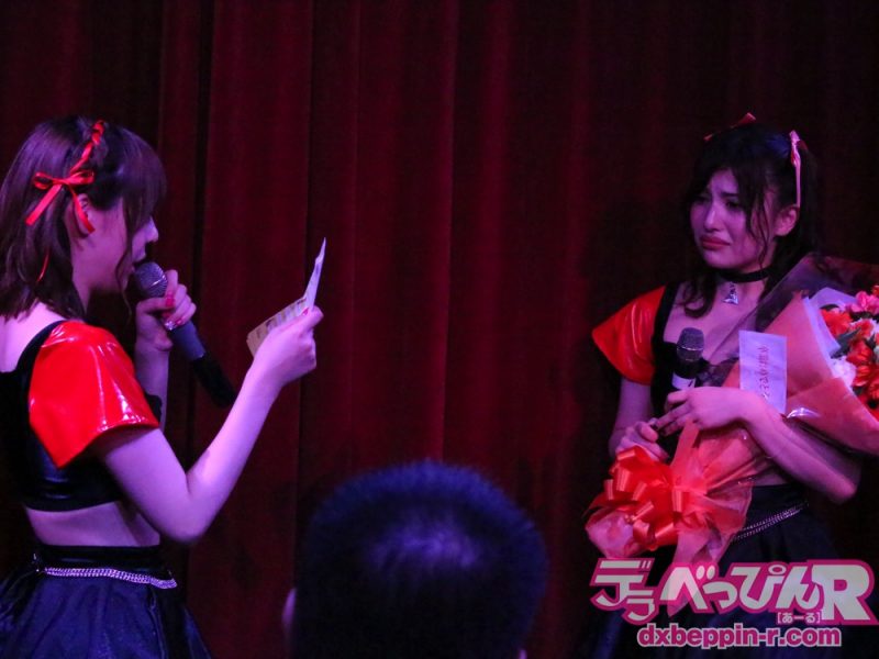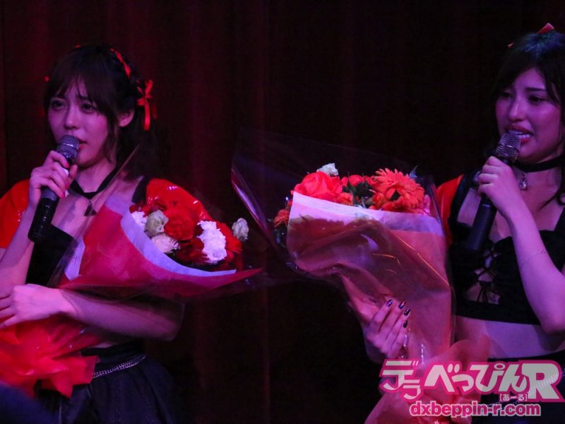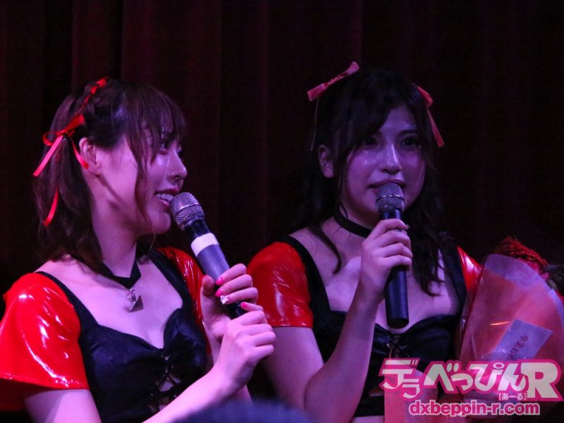 早川瑞希ちゃんと七海ゆあちゃんの頬に熱い涙がキラリと光った……原宿☆バンビーナ卒業公演!『今宵ついに処女膜再生!バンビーナさよなライヴ 〜私のヴァージン奪いに来て?〜』
