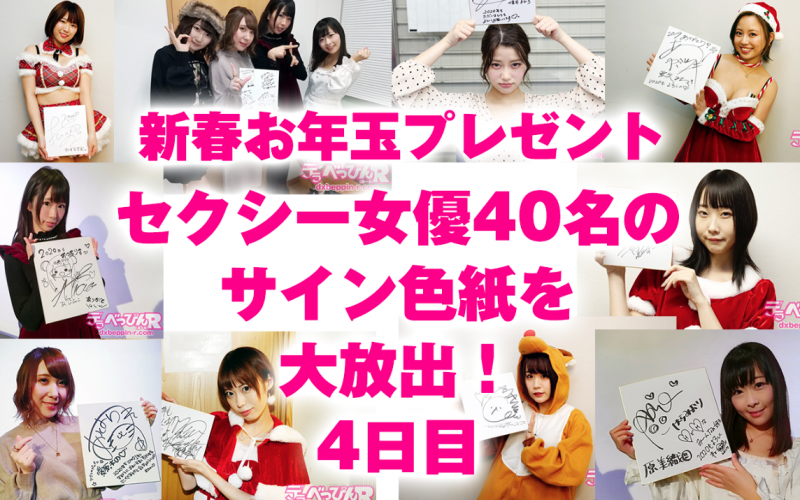 デラべっぴんR読者にご愛読の感謝を込めて、2019年12月31日から2020年1月3日まで、4日連続でセクシー女優のサイン色紙プレゼントを行います。