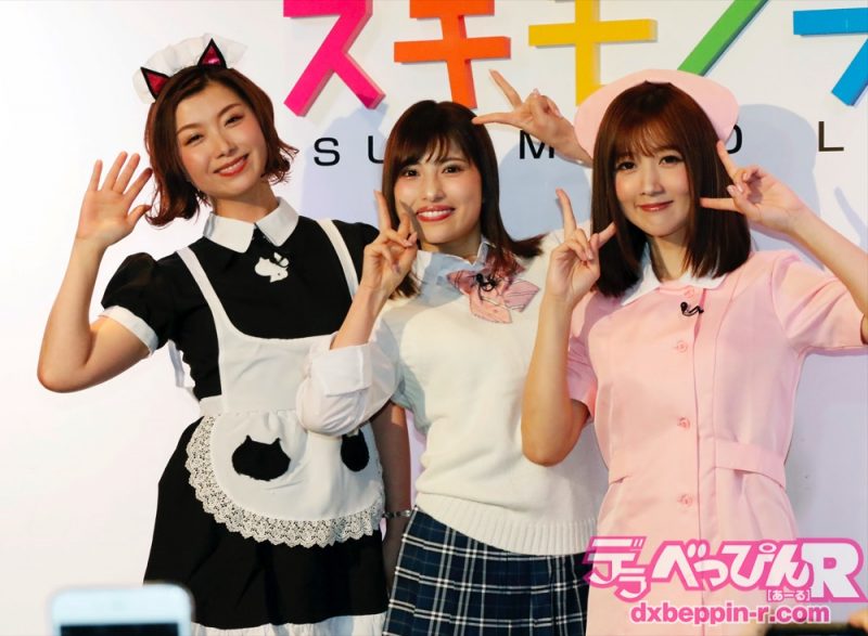 このスキモノラボは2012年7月から放送されているアダルトグッズ通販番組。本来はスタジオ収録されていますが公開イベントと合体。今回、公開収録に出演したセクシー女優は大槻ひびきちゃん、早川瑞希ちゃん、加藤ツバキさんの3名。早川瑞希ちゃんは同番組の公開収録初登場です。