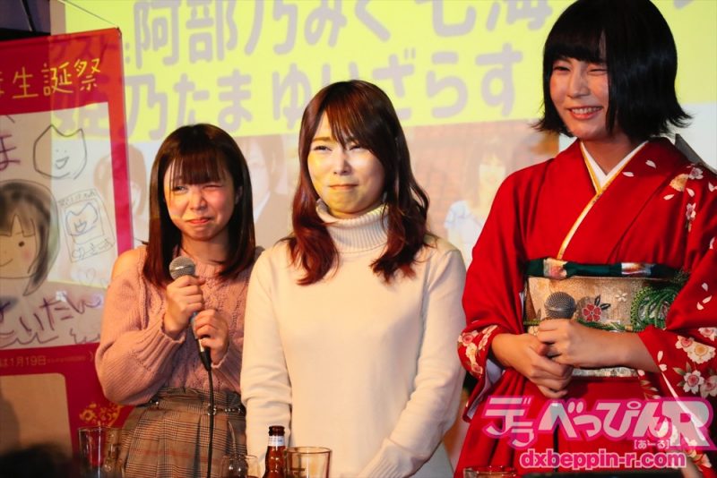 ゲストには阿部乃みくちゃん、七海ティナちゃん、月刊FANZAでAVレビューを書いている歌手でライターの姫乃たまちゃん、アイドルのゆいざらすちゃんと幅広いジャンルから乃木蛍ちゃんを祝福しに集まってくれました。