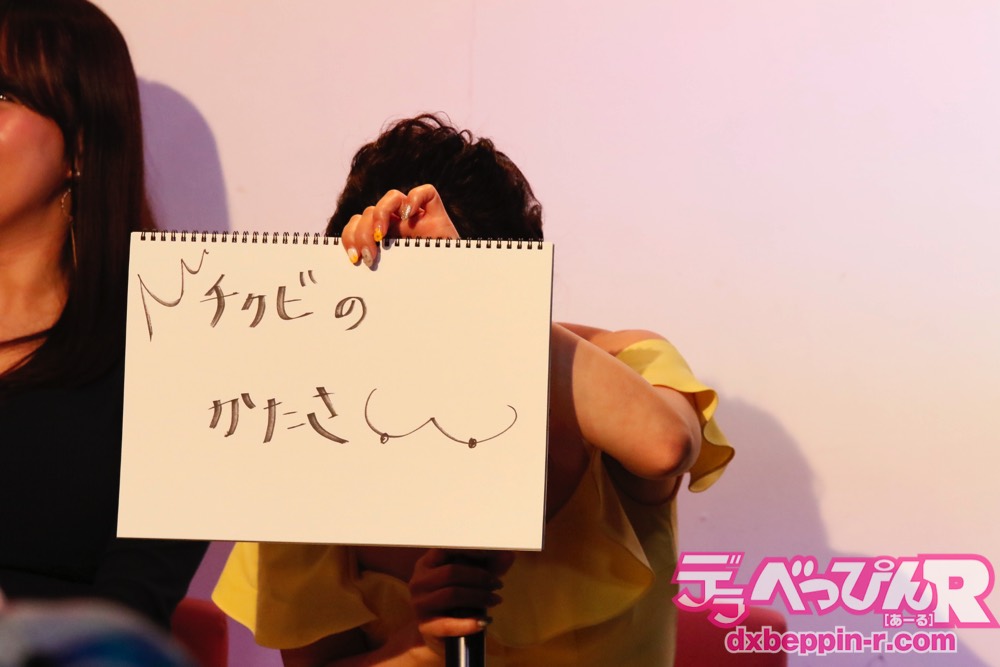 続いて一問だけ「エロ大喜利」が行われ「オリンピックに出場したい競技名は何か?」のお題が出されると、「潮のメートル」と答える浜崎真緒ちゃん。これは「潮吹きの高さと距離とターゲットに当てるのを競う」とのこと。本人はかなりやる気満々!