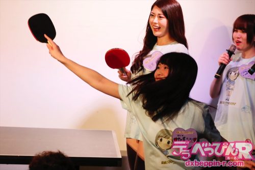 1回戦は卓球対決。ダブルス、シングルと一進一退の勝負が続きますが、最後のリーダー対決できみち歩実ちゃんが惨敗! ちなみに活躍した目黒めぐみちゃんの実家には卓球台があるそうです。