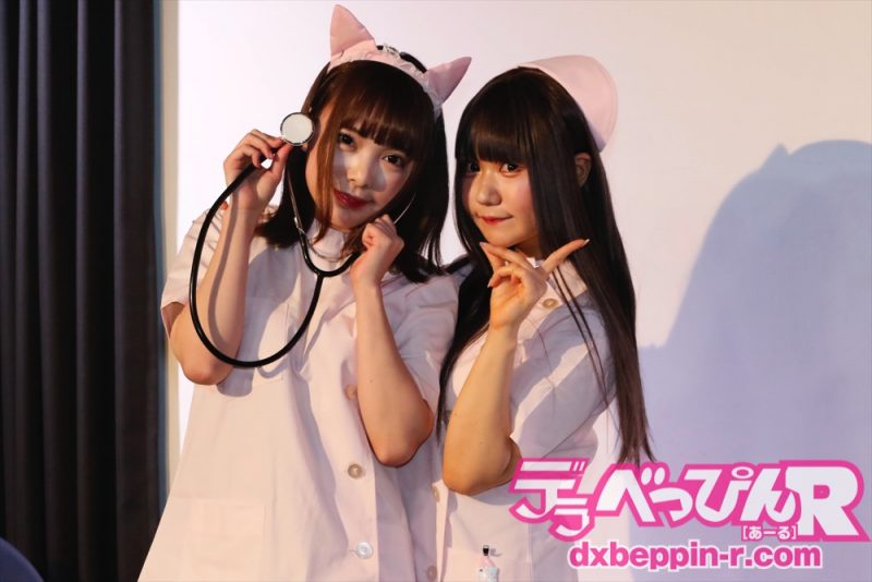 まずはセクシーなミニスカナースで登場したNIMOちゃんと蘭々ちゃん。「コロナが流行っているからナース姿です」とシャレが利いています。さらにコロナビールも客席から送られ、今回のコロナ騒ぎを逆手に取る戦術に(笑)。