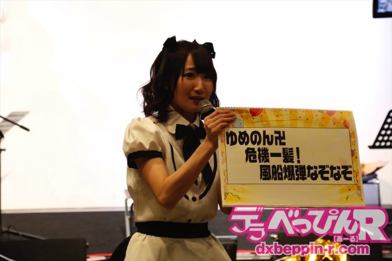 続いては内容が一変し、バラエティテイスト溢れる「危機一髪! 風船爆破なぞなぞ」に挑戦。10問なぞなぞが出題されますが、回答時間中に隣に置かれた風船がどんどん大きくなる仕組みになっています。制限時間はないのですが、回答できない間は膨らみ続けるので恐怖との戦いとなります。