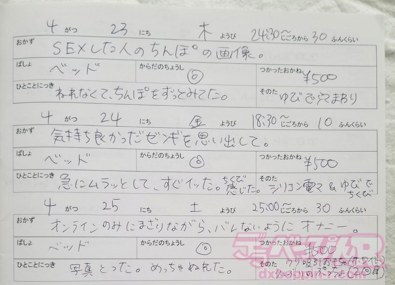 皆さんもぜひこの機会に、『オナニー帳』に自慰の記録を付けてコロナ禍を乗り切りましょう!