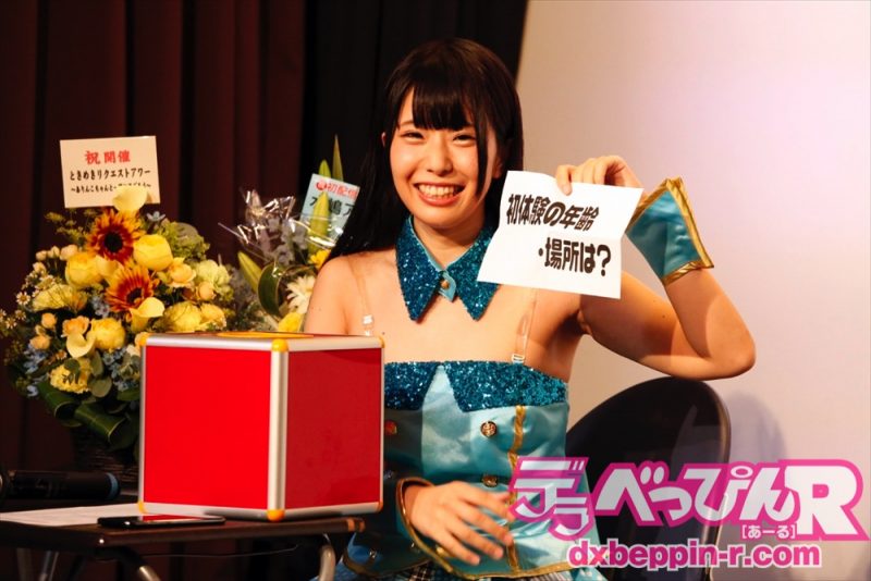 いきなり「初体験の年と場所」を引くと、「年は18歳。場所は相手の家」とのこと。オンラインイベントで見られていると思うと、恥ずかしがる水嶋アリスちゃん。その表情がキュート。