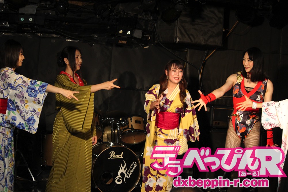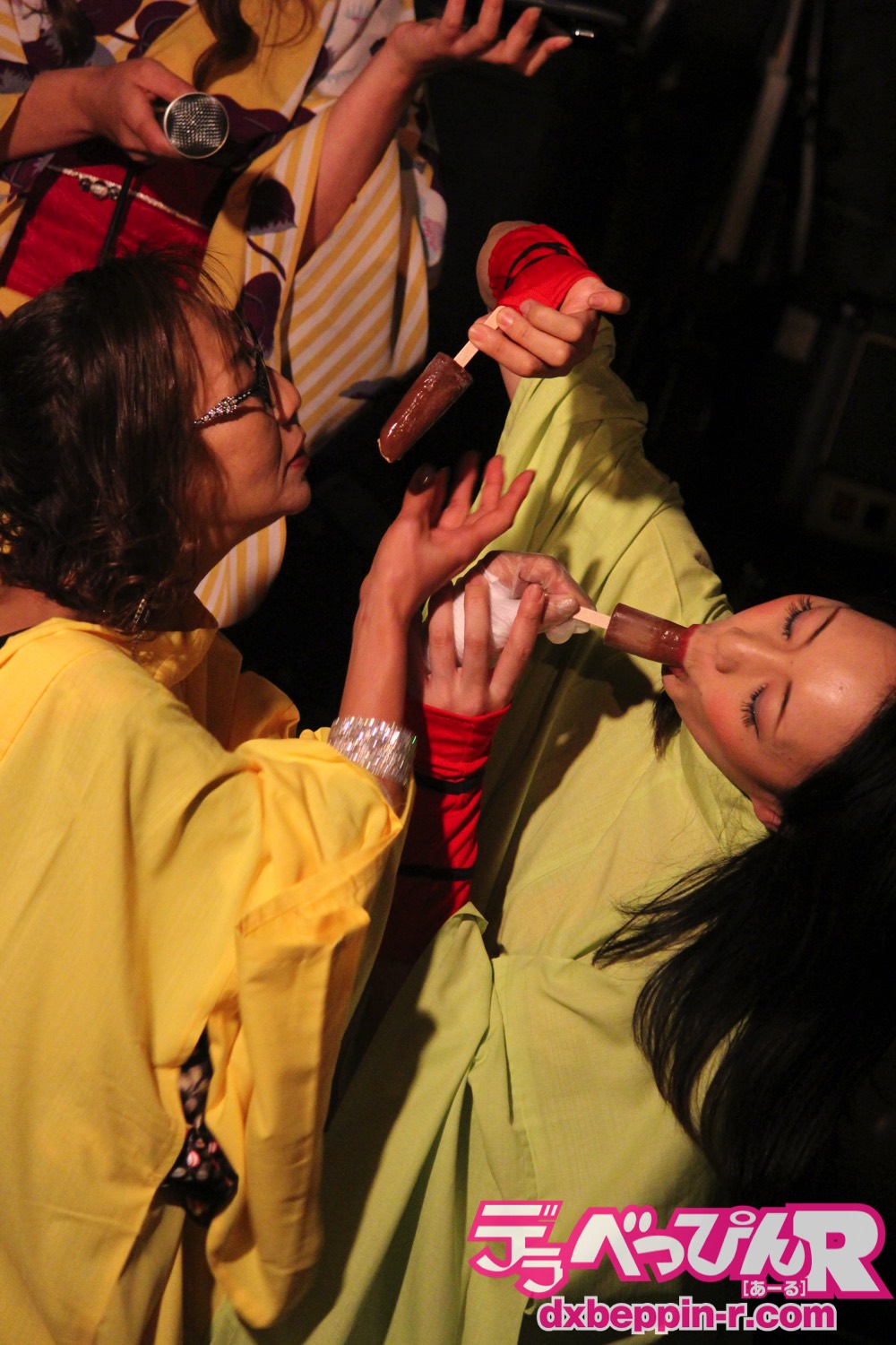 マリーさんが自ら脱ぐ気満々だったり、いつかちゃんが浴衣の帯を「あ〜れ〜」されたり、杏ちゃんがたわわなおっぱいを惜しげもなく曝したり。ステージがどんどん肌色になっていく(笑)。