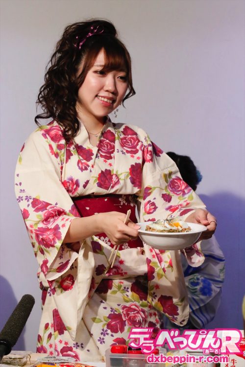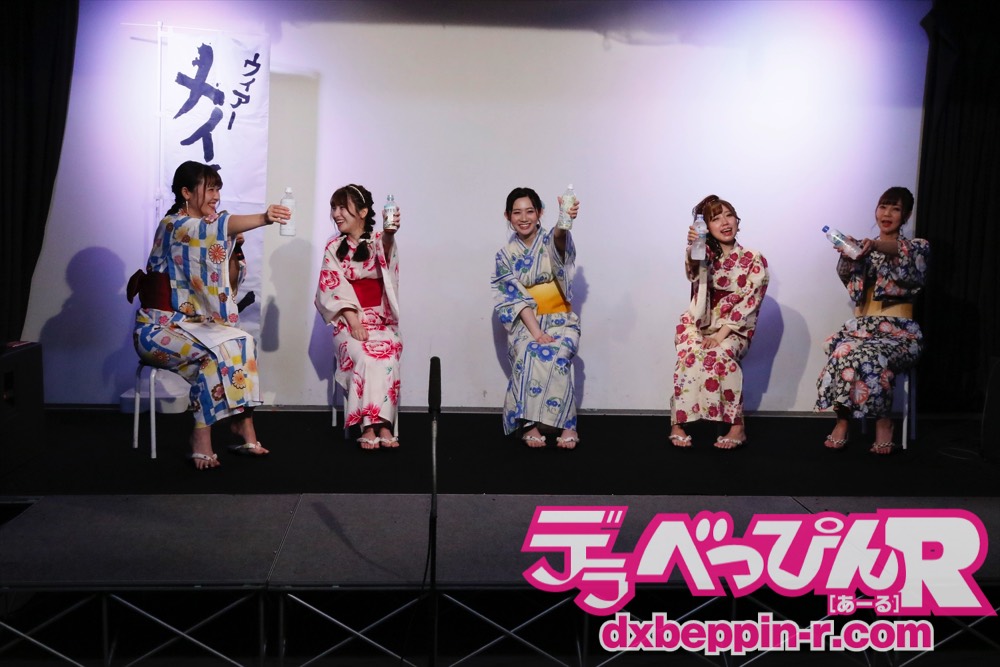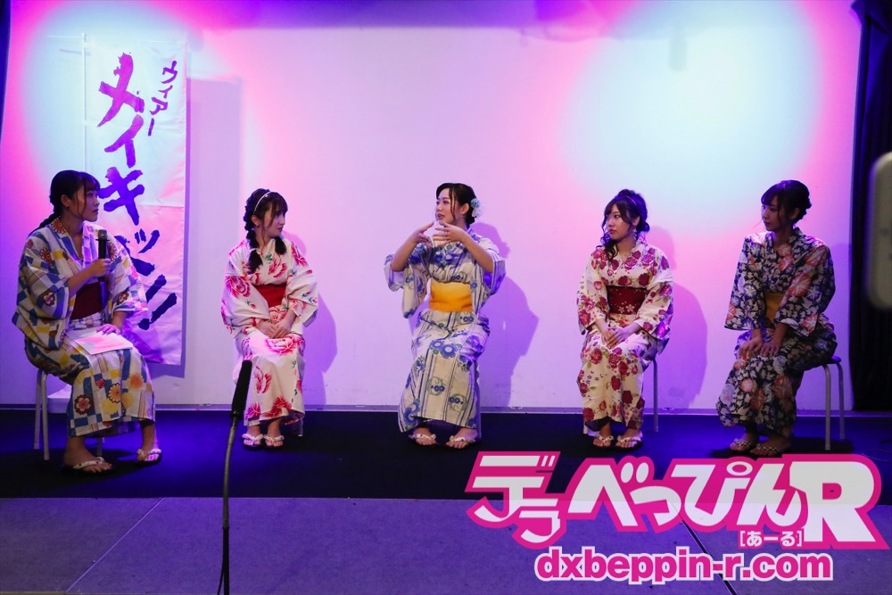 夏らしく華やかな浴衣姿で登場した5人。浴衣を選んだ理由を聞かれると「みんなに選んでもらった」(北乃みれい)、「普段は選ばない青」(一ノ瀬恋)、「バラ柄を選んだ」(ひなちゆん)、「朝顔です。髪形は(新垣)智江がやってくれた」、「用意された衣装を見て、いちばん気に入った」(新垣智江)とコメント。艶やかな浴衣姿が夏気分を盛り上げます。