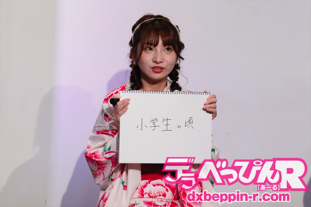 北乃みれいちゃんは「小学生の頃」とフリップに書き、「キャンプや富士山に家族みんなで行った。夏がいちばん人生で楽しかった。中高生の時は友達といつも原宿や渋谷に行って遊んでいた」と思い出を語ってくれました。