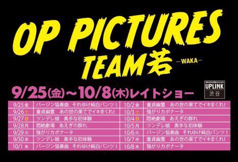 R18+のピンク映画やBL映画の中から、若手監督が手がけた作品にフォーカスを当てた特集上映「OP PICTURES TEAM 若 -WAKA-」が東京・渋谷にあるUPLINK渋谷で9月25日から10月8日まで特集上映されている。