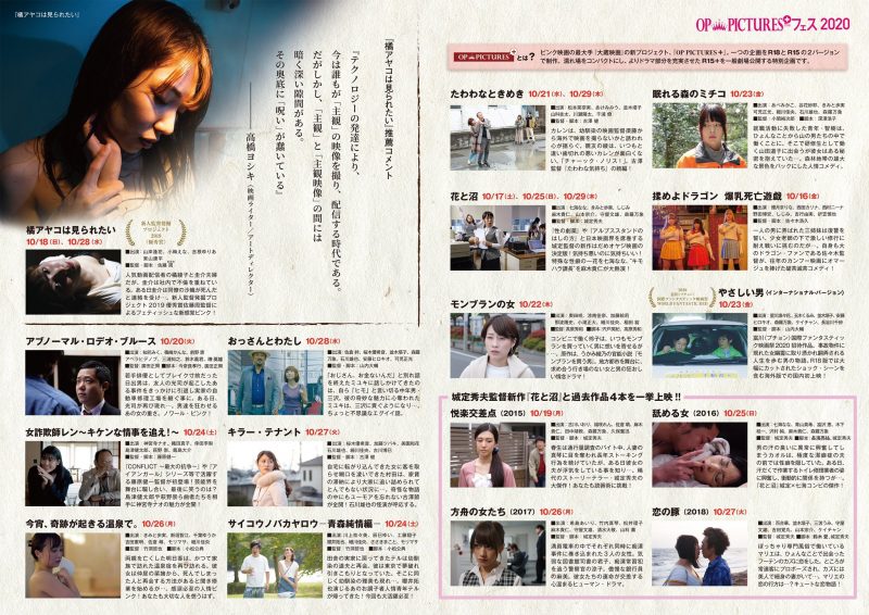 ピンク映画を製作する大蔵映画のOP PICTURES+レーベルによるR15ピンク映画の祭典「OP PICTURES+フェス2020」が10月16日に華々しく開幕し早くも折り返し地点に突入。コロナ禍にも負けず、ピンク映画ファンはもちろん映画ファンも多数詰めかけ、連日、大盛況のフェスとなっている。
