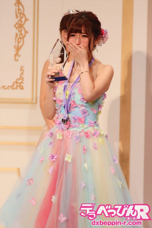 そして、ここみんを目指した私がいるように、この私を目指してくれる女優さんがいたら、本当に嬉しいです。これからアダルト業界はたくさんいろいろなことがあると思いますが、これからもみなさま『推しは推せるときに推せ』ということで、応援よろしくお願いいします。本当にありがとうございました!」とさすが女王らしく、アダルト業界全体のことにまで言及した、すばらしい受賞スピーチをして授賞式を締めてくれました。