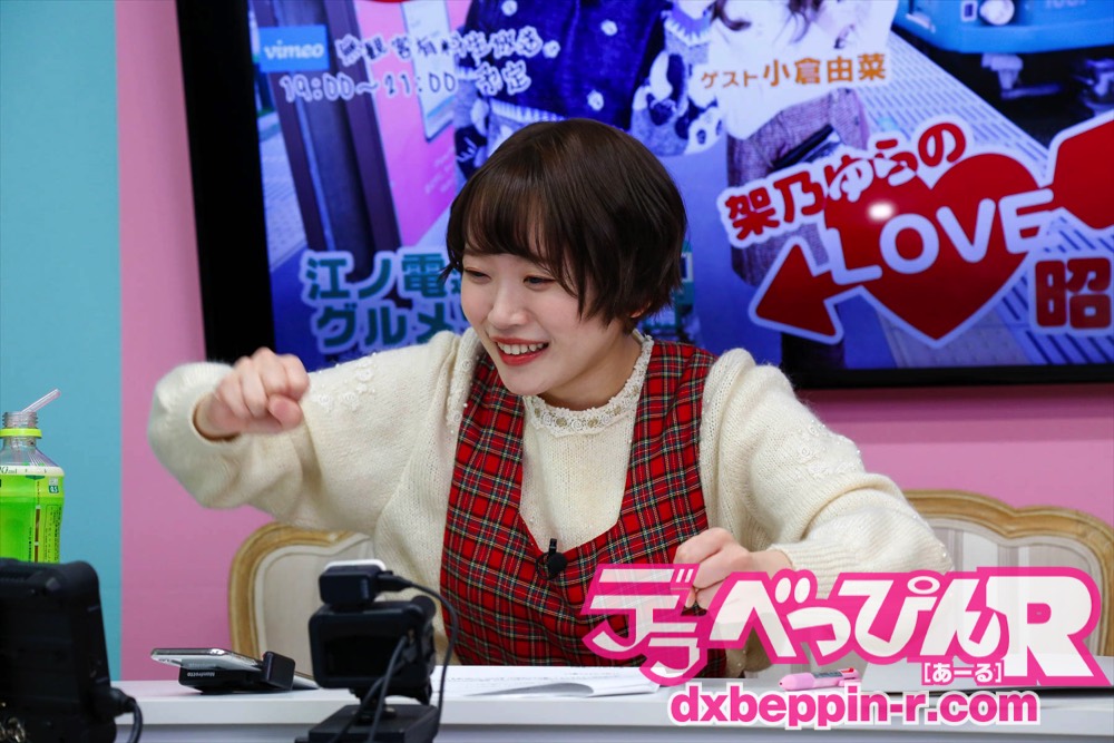 小倉由菜ちゃんとの江ノ島デートを観ながら「おぐゆなちゃんはいままで見た中でいちばんかわいい。輝きがあふれかえっていました」と当日の様子を思い出しコメントする架乃ゆらちゃん。